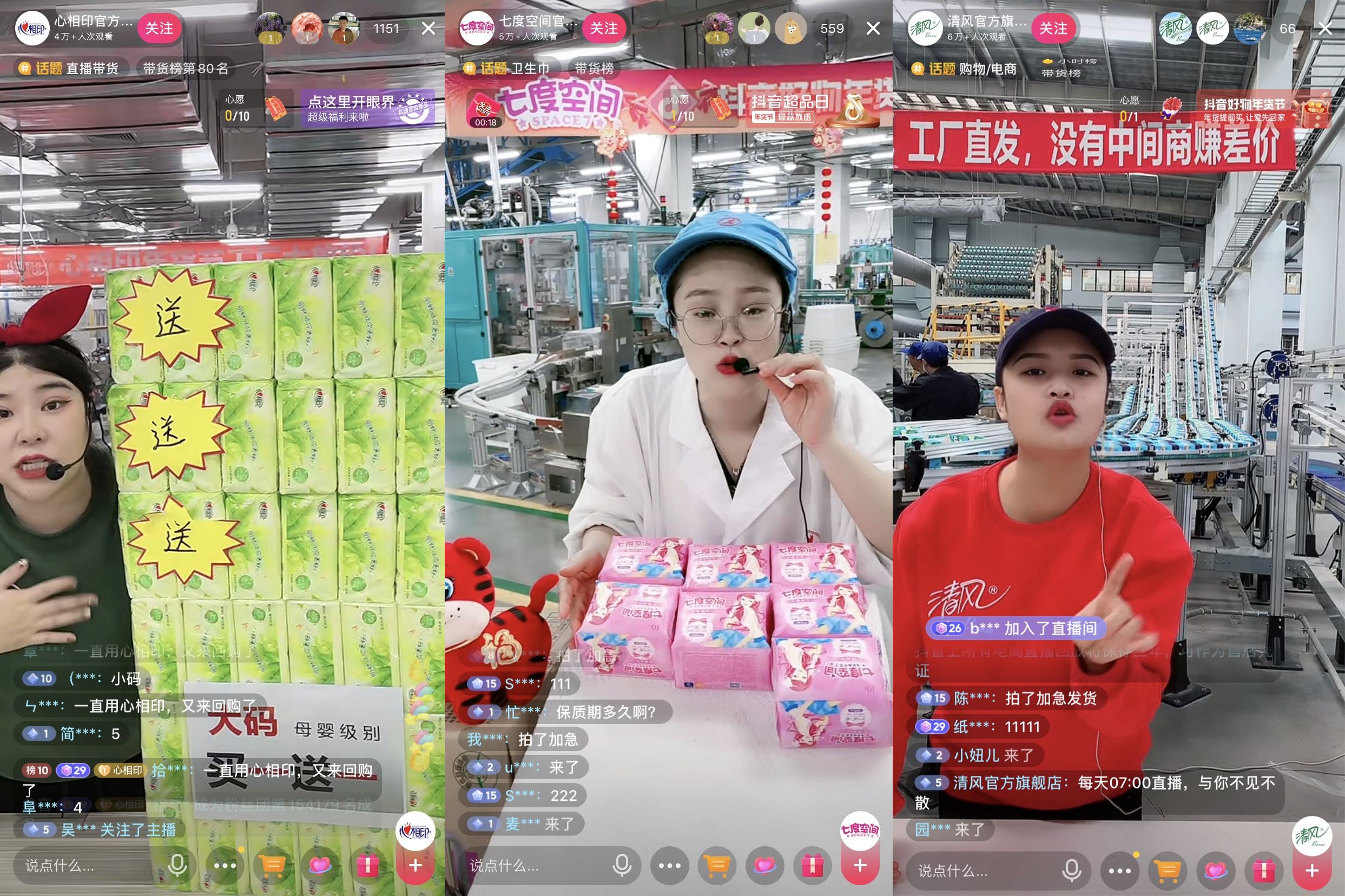 以2021年8月份的“‘纸’‘卫’守护你”活动为例。在该活动中,抖音上的达人彩虹夫妇开设了恒安(恒安集团为中国四大用纸企业之一,旗下纸卫品牌包含心相印、七度空间、安尔乐等)专场直播。直播6小时,心相印爆款茶语经典抽纸热销300万包。中顺洁柔联合抖音上的达人潮爸刘教授做客品牌自播间,人气单品洁柔纸面巾粉face软抽销量突破280万包。